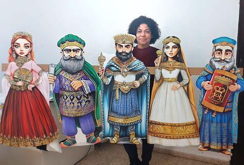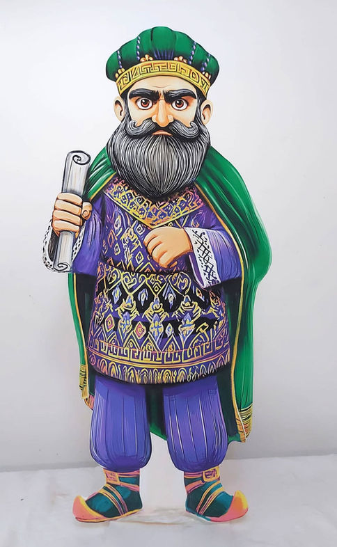 דמות המן לפורים בגן ילדים עשוי מקנבס מעוצב עם טול, נצנצים וכל מיני קישוטים יפים. גובה 88 סיימ. בשביל הגננות שאוהבות להכין לבד תפאורות , הדמויות עוזרות לעצב בקלות תפאורה מיוחדת ואומנותית.